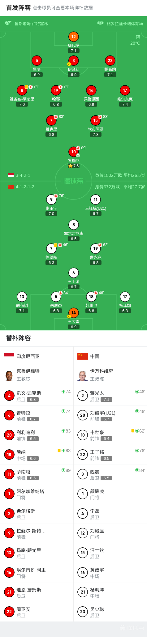 第88分钟,印尼换人调整,罗梅尼被替换下场