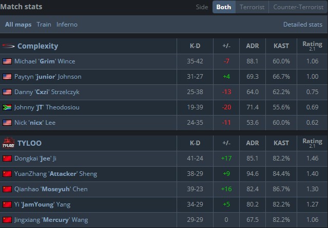 COL禁Mirage,TYLOO禁Dust2,COL选Train,TYLOO选Inferno,TYLOO禁Ancient,COL禁Nuke,决胜图Anubis。