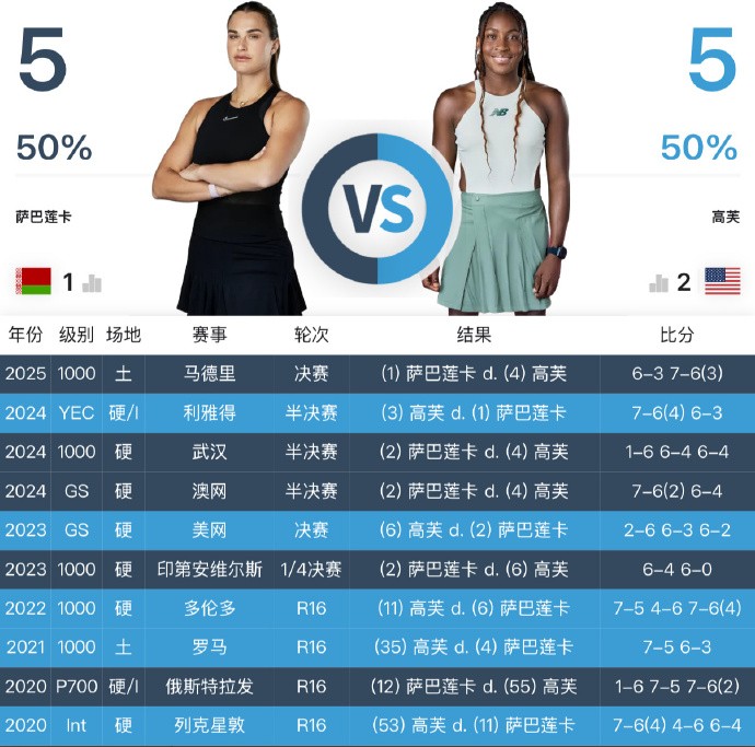 法网女单决赛:萨巴伦卡对阵高芙,双方交手纪录5-5gaoniu @懂球帝2025-06-06 01:246月6日,法网半决赛,高芙直落两盘2-0横扫本土球员布瓦松,决赛将战萨巴伦卡。双方交手纪录5-5平(红土1-1),今年马德里赛萨巴伦卡取胜。展开更多
