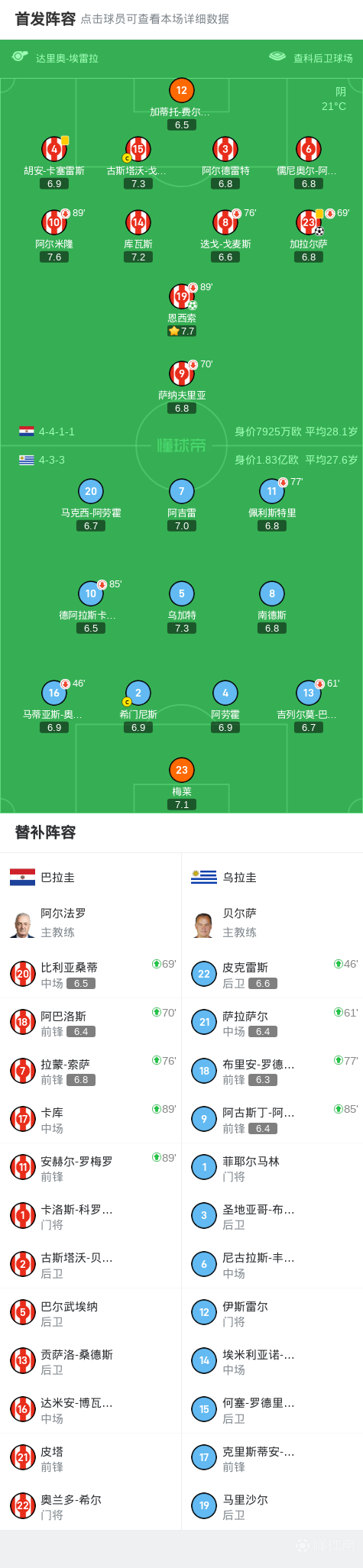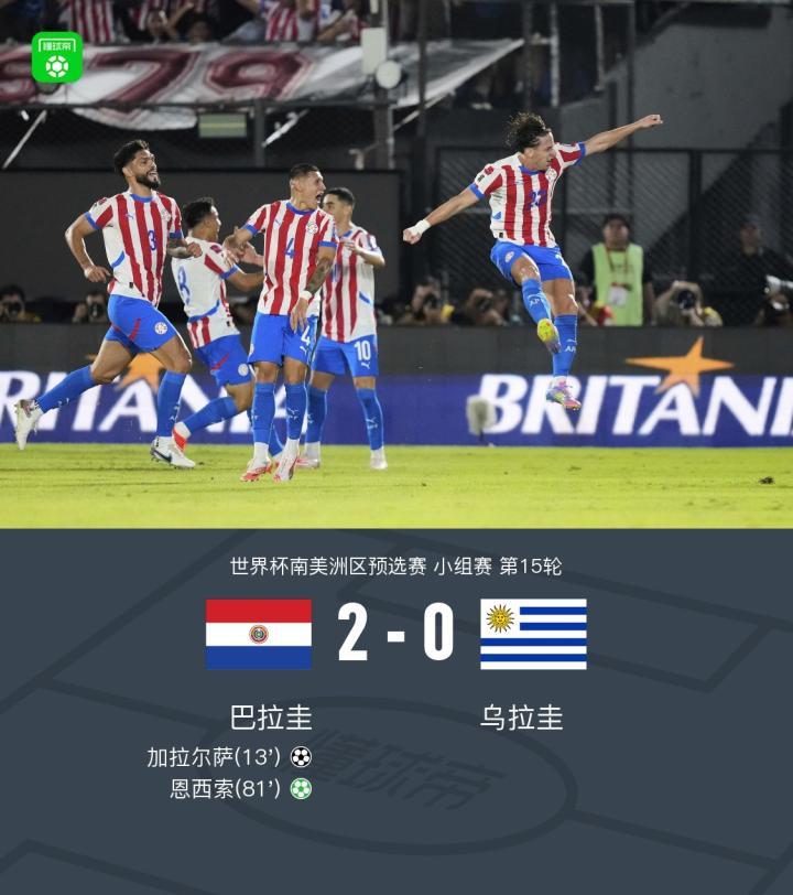 巴拉圭2-0乌拉圭,阿劳霍低级失误送点,恩西索、加拉尔萨破门
