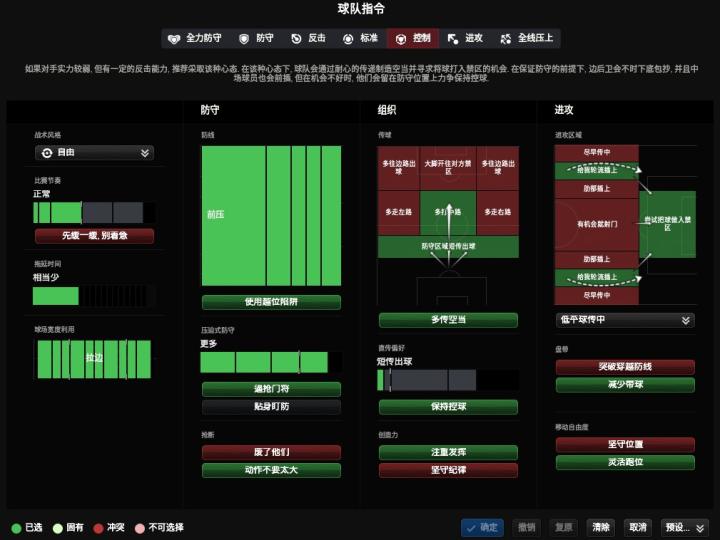 战术风格和创造力上我选了自由和注重发挥,因为有厄齐尔和格子这样的球员,太过于固定的风格只会限制他们的创造力。同时减少带球突破,灵活跑位,多传空当,让比赛打的非常流畅。