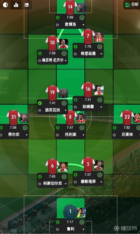 这个阵型下,恩博洛顶在最前面,格子出任二前锋,厄齐尔在他们身后输送炮弹,但问题是放弃了勒马尔和阿森西奥两名世界级边锋,但他们俩还年轻,相较于技术特点基本固定的厄祖和格子还有转型空间,所以就暂时放弃掉他们吧。先不说后场的角色分配,先说上面三个人,一开始的设定是,恩博洛(全能前锋-进攻),格子(九号半-进攻),厄祖(前场组织核心-进攻),经过几场测试之后,我发现助教经常告诉我,格里兹曼并不在自己的最佳位置,于是我将他的位置后撤,与厄齐尔平行,角色同样还是九号半。