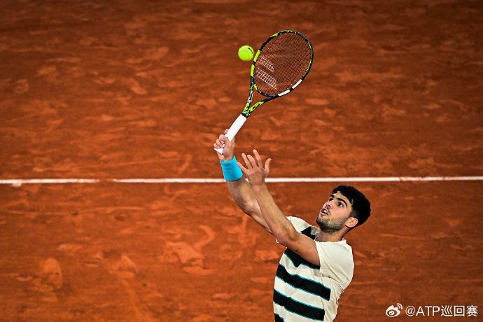 6月6日,男单半决赛,卫冕冠军阿尔卡拉斯在大比分2-1、局分2-0领先的情况下收到穆塞蒂的退赛礼,连续两年跻身法网决赛。这是他第五次闯入大满贯决赛,此前四次保持不败。