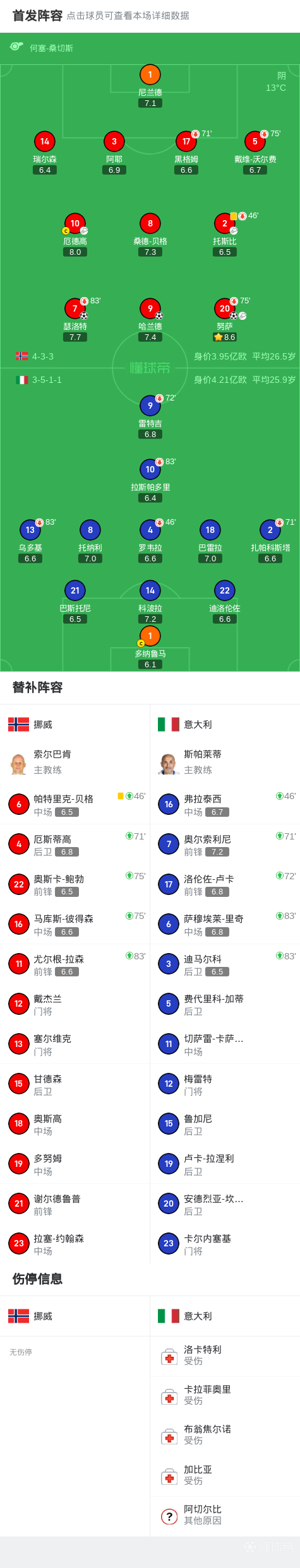 第75分钟,挪威再换人,鲍勃、彼得森登场,换下努萨、沃尔费