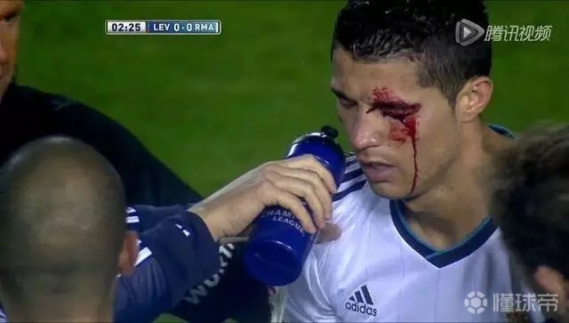 历史上,C罗曾多次带血征战!在12-13赛季,皇马对莱万特的比赛仅仅开场2分钟,C罗就被对方球员的肘部击中眼眶,一度血流不止,然而,重伤不下火线的C罗依然选择留在场上,而C罗还在比赛中打进一球,真可谓铁血真汉子!