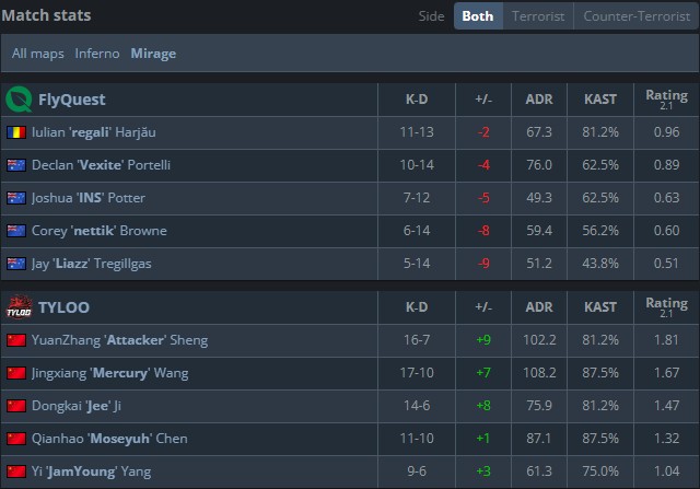 TYLOO禁Dust2,FQ禁Train,TYLOO选Inferno,FQ选Mirage,FQ禁Ancient,TYLOO禁Nuke,决胜图Anubis。