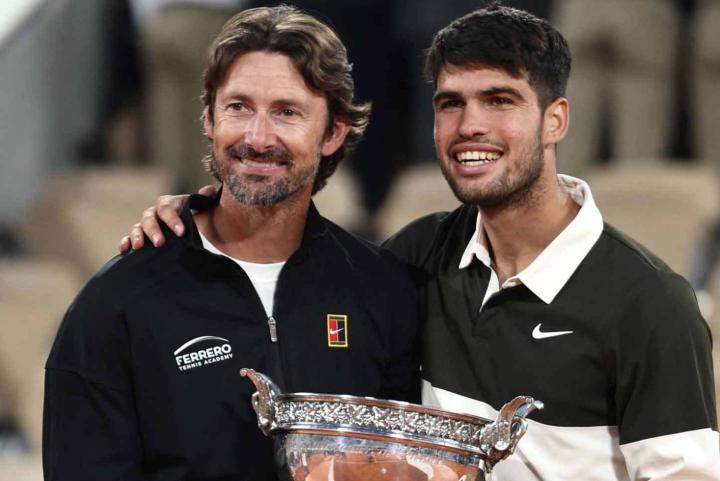 北京时间6月9日,2025法网男单决赛,卫冕冠军阿尔卡拉斯在先丢两盘的落后情况下,第四盘挽救3个冠军点,并最终通过五盘逆转,以4-6、6-7(4)、6-4、7-6(3)、7-6(2)战胜头号种子辛纳。赛后,阿尔卡拉斯的教练费雷罗接受了记者采访。