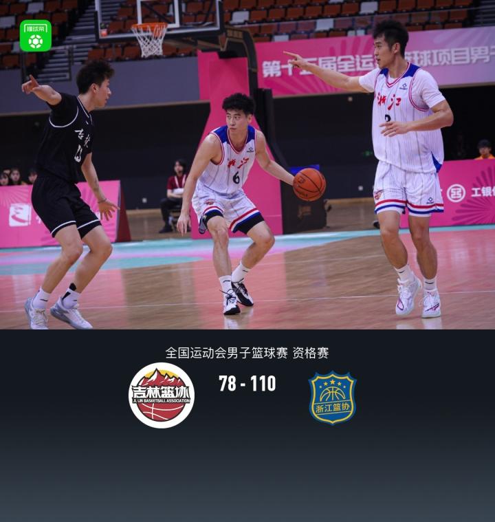 北京时间6月10日,全国运动会男子篮球赛资格赛,吉林男篮对阵浙江男篮。半场吉林男篮31-51浙江男篮,最终吉林男篮78-110浙江男篮。