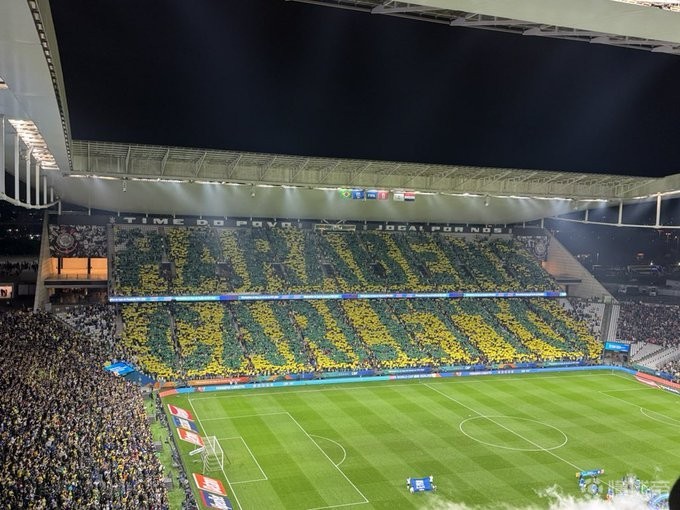 今日是安切洛蒂执教巴西队的主场首秀,巴西在主场迎战巴拉圭队。巴西球迷为卡洛-安切洛蒂在巴西国家队主场的首场比赛制作了这张tifo,上面写着以下内容:“生日快乐!安切洛蒂。”