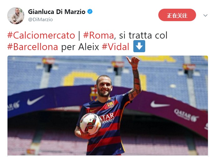 该报道同时指出,罗马准备以先租后买的方式从巴塞罗那引进阿莱士-比达尔,合同中的买断费用将在1000万-1100万欧元之间。