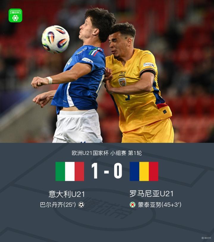 欧青U21意大利1-0罗马尼亚,巴尔丹齐建功,蒙泰亚努失点