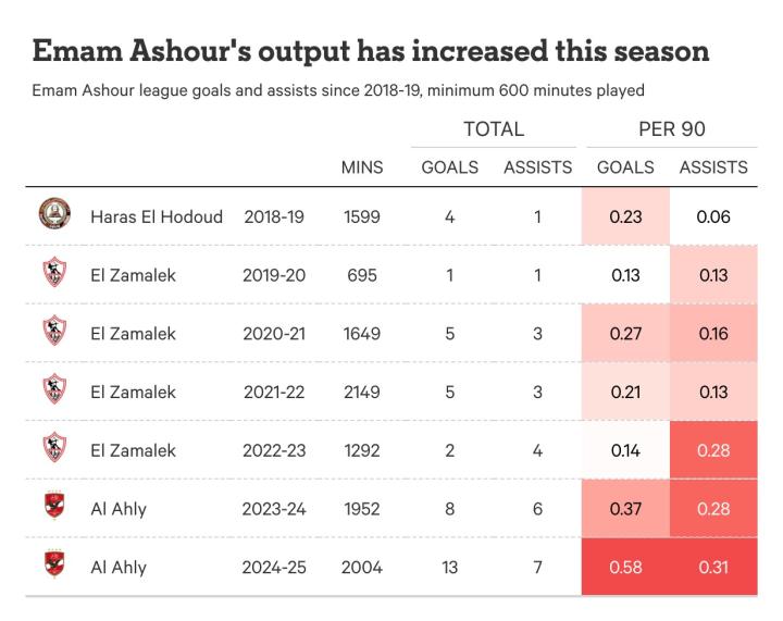 这次回归引发轩然大波,他选择了加盟扎马雷克体育的死敌开罗国民。两年间,阿舒尔率领开罗国民两夺埃及超级联赛冠军、一次埃及杯冠军及2024年非洲冠军联赛奖杯。这位全能中场既能通过抢断和防守稳固中场,又能以细腻技术策动进攻。两大技术亮点尤为耀眼:持球推进能力与破门嗅觉。阿舒尔带球突破的特质令其在攻防转换中极具威胁,而灵动的无球跑位与精妙的射门技术使其上赛季进球数飙升。