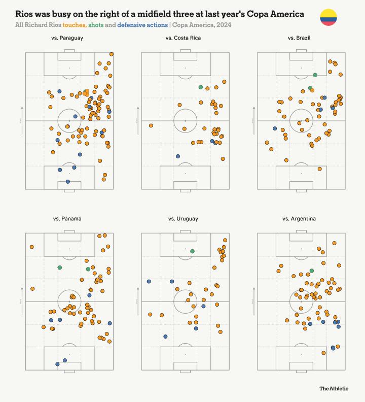 家喻户晓的是球队创造力源泉哈梅斯-罗德里格斯,而令人惊喜的发现则是理查德-里奥斯。这位身材修长的中场球员在揭幕战对阵巴拉圭前三个月才迎来国家队首秀,彼时他刚满24岁。既非老将也算不上新星,甚至从未在国内顶级联赛留下足迹。