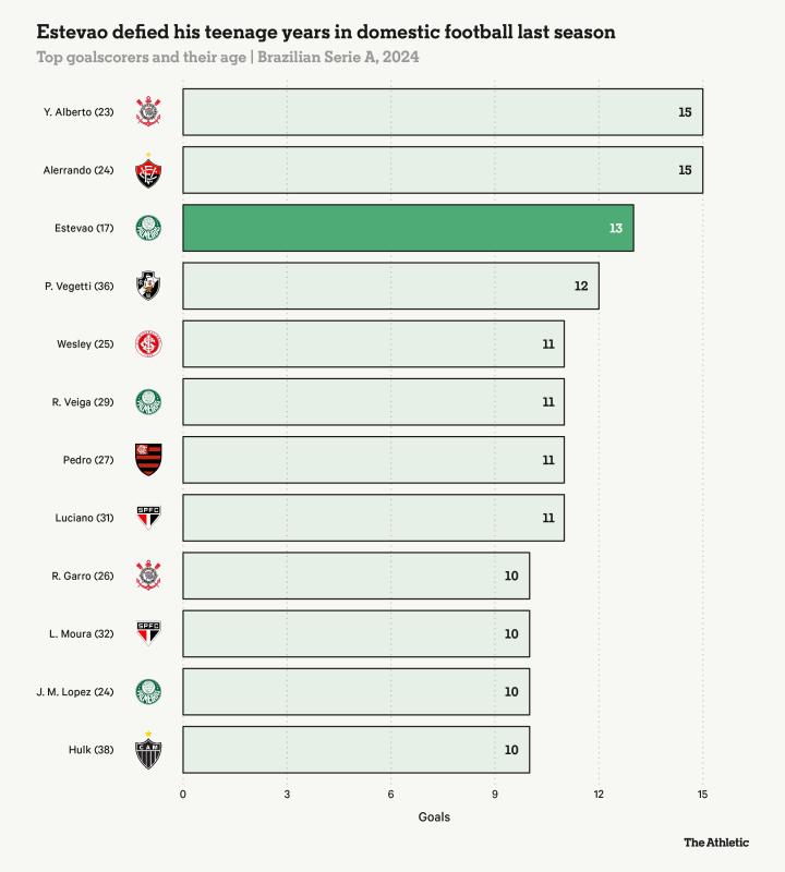 但最重要的是,他天赋异禀到令人难以置信。14岁转会帕尔梅拉斯时,足坛就已暗自认定他可能成为巴西足球下一个超级新星。那是2021年。此后数年间,期待从未减退。搜索他的名字,你会看到成百上千的进球集锦和技巧视频,还有与内马尔、德尼尔森等前辈天才的溢美比较。虽然只开启成年队生涯18个月,人们的期待已然直上云霄。