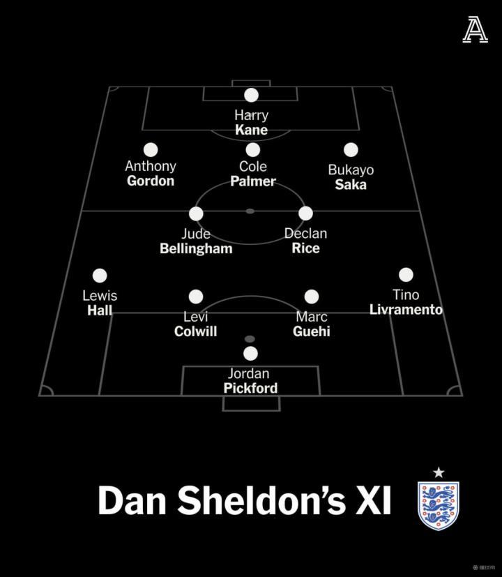 该给霍尔出场机会了,他能在左路与纽卡斯尔队友安东尼-戈登配合,拉扯对方防线。同理,只要图赫尔能说服本-怀特重返国家队,他在右路的插上能激发萨卡最好状态,为凯恩制造传中机会,也能为帕尔默提供空间。赖斯和贝林厄姆将继续杀入禁区。