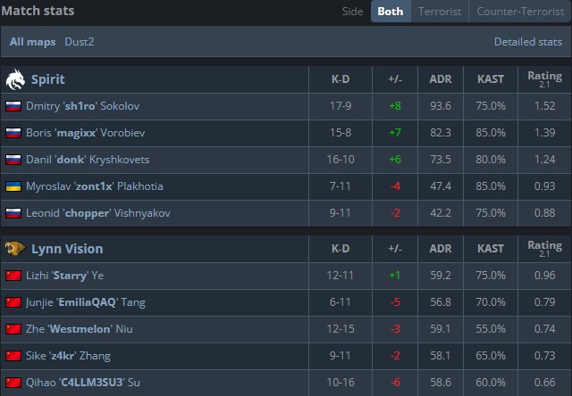 LVG禁Mirage、Ancient,Spirit禁Anubis、Inferno、Train,LVG禁Nuke,最终地图为Dust2。