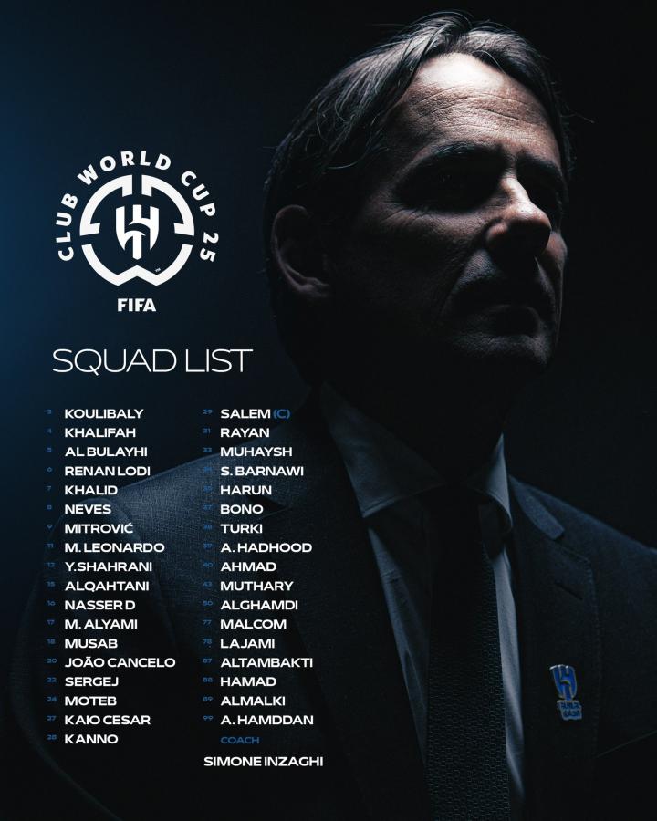 北京时间6月13日,西蒙尼-因扎吉执教的利雅得新月公布了他们出征世俱杯的大名单,库利巴利、雷南-洛迪、鲁本-内维斯、米特罗维奇、米林科维奇-萨维奇、坎塞洛、布努以及马尔科姆等名将悉数入选。