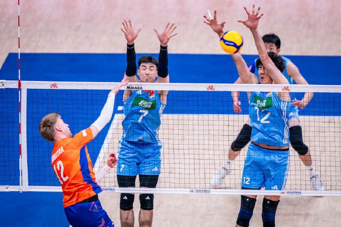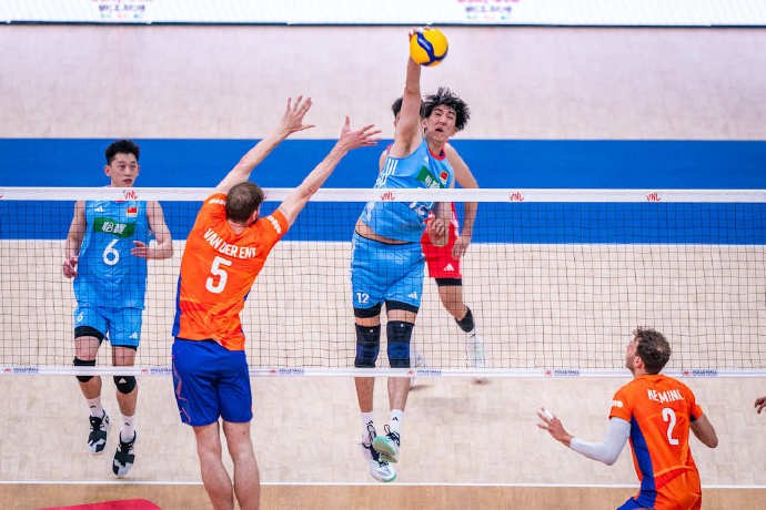 6月14日,世界男排联赛西安站,中国队3-1(25-19、25-20、13-25、25-17)击败荷兰,取得两连胜。