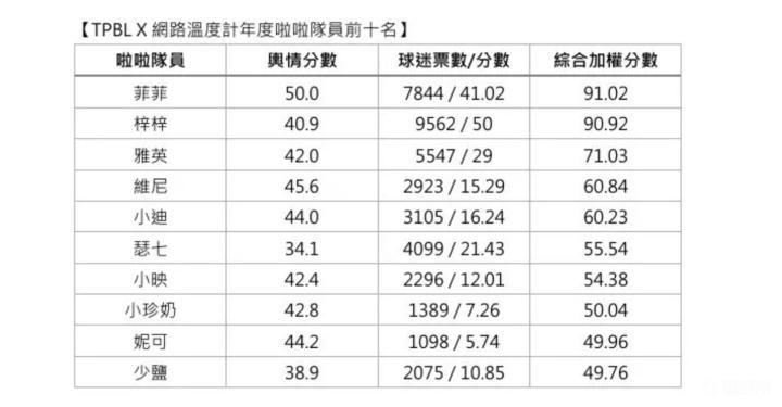 据官方消息,来自台北台新战神啦啦队的菲菲以0.1分的优势,力压福尔摩沙梦想家的梓梓,成功当选TPBL2024-25赛季年度啦啦队员。