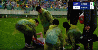 第35分钟,吴亚轲出击封堵法比奥,三人相撞后均倒地不起,队医进场治疗