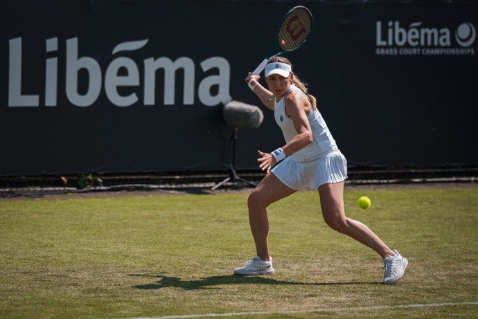 3号种子梅尔滕斯在第二盘挽救11个赛点,最终以2-1(2-6、7-6(7)、6-4)逆转两届赛会冠军、2号种子亚历山德罗娃,今年第三次跻身巡回赛争冠战,这也是她职业生涯的第一个草地决赛(总第16个决赛)。
