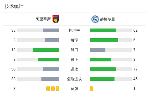 第33分钟,阿里蒂斯球员奥科涅夫斯基打入一球。