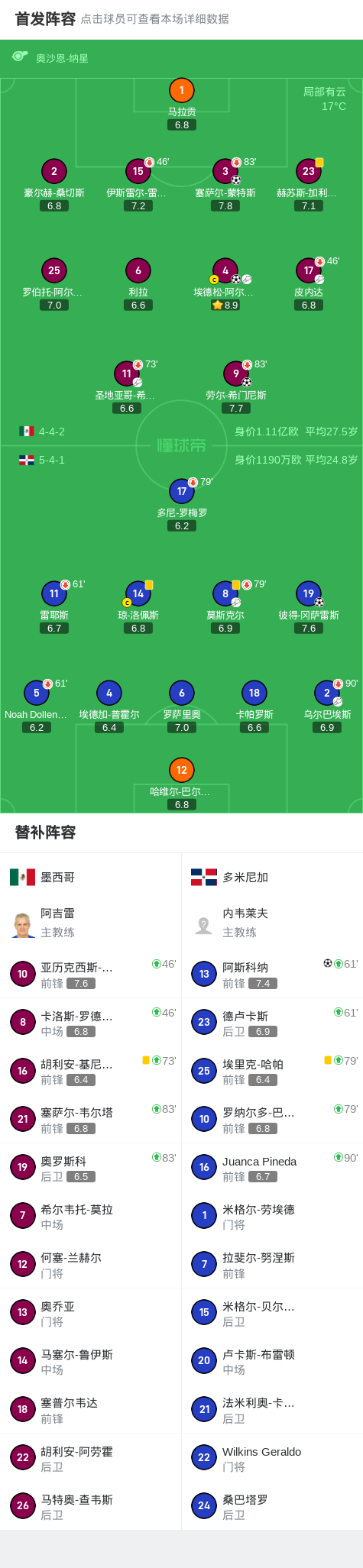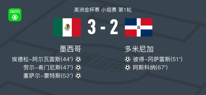 墨西哥3-2多米尼加,塞萨尔-蒙特斯破门,劳尔-希门尼斯建功