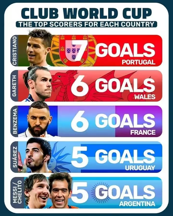 C罗在世俱杯总计打入7球,仍保持着世俱杯历史进球纪录李老八啊 @懂球帝2025-06-16 13:47据媒体统计,C罗在世俱杯总计打入7球,仍保持着世俱杯历史进球纪录。而贝尔、本泽马凭借6粒进球居于次席,梅西、苏亚雷斯打入5粒进球紧随其后。 你觉得老世俱杯和新世俱杯该分开计算进球统计吗?展开更多