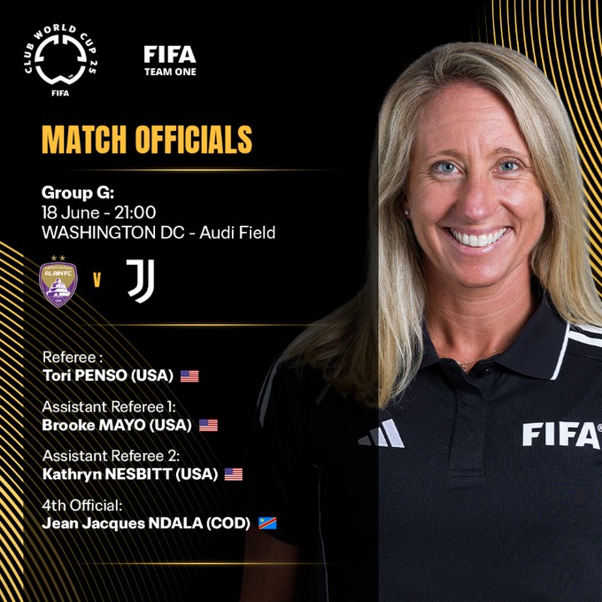 官方:彭索将执法艾因vs尤文;她曾执法23年女足世界杯决赛