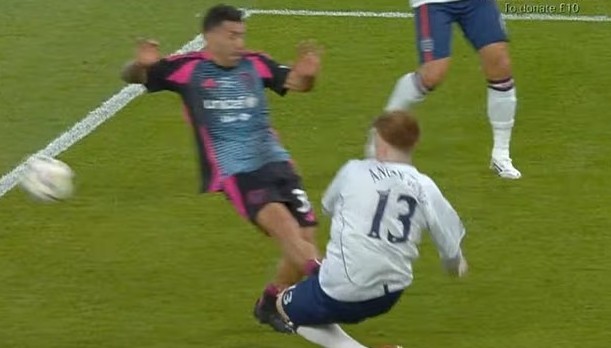 特维斯在慈善赛里被网红凶狠放铲,对方是曼联忠实球迷