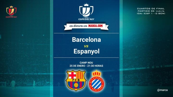 国王杯1/4决赛首回合,巴萨客场0-1被西班牙人绝杀,实际上,巴萨在整场比赛上的表现已足够完美,控球率高达72%,创造了12次进球机会,但是,梅西错失点球略显遗憾,最终巴萨遭遇了新赛季国王杯的首场败仗。上场西甲,巴萨在客场5-0轻松将皇家贝蒂斯击败,梅西和苏亚雷斯各自斩获2粒进球,球队没有因国王杯首回合的失利而受到任何影响。在诺坎普球场,巴萨最近4战皆胜并全部零封了对手,仔细观察,这4场比赛的比分结果从2-0到5-0是个顺子,此番迎战同城对手,巴萨还能接着顺下去吗?小马哥来到中超转会河北华夏幸福,相信这不会对巴塞罗那构成过多影响,正所谓铁打的营盘流水的兵,皮克、乌姆蒂蒂和维尔马伦都可以担当重任。比赛重点还是要看巴萨怎样排兵布阵,库蒂尼奥和耶里-米纳首次入选,伊涅斯塔和帕科伤愈复出重返大名单。