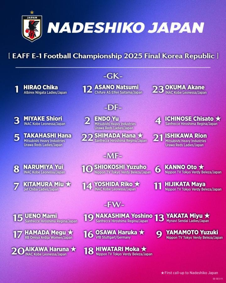 日本女足东亚杯大名单:日本联赛班底为主,1名留洋球员在列