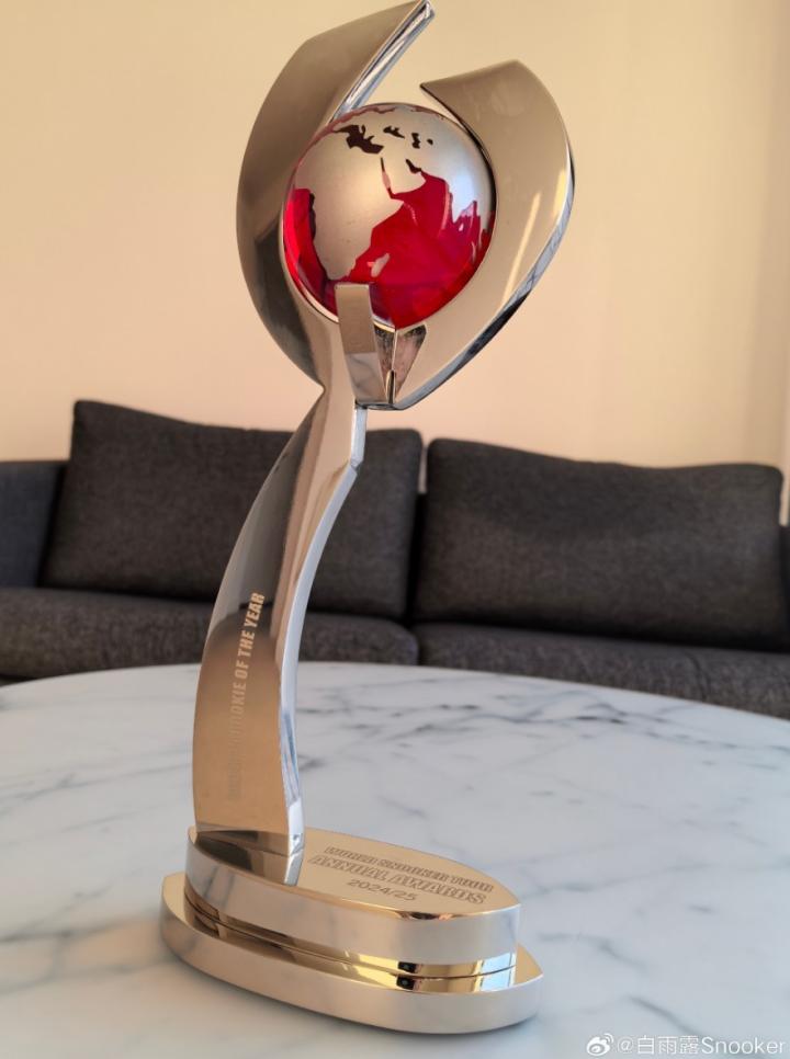 成功卫冕女子斯诺克世锦赛冠军,白雨露社媒晒年度新人奖杯