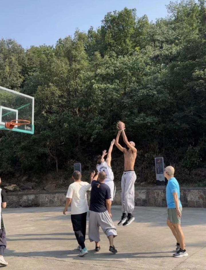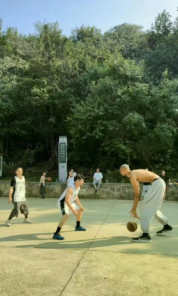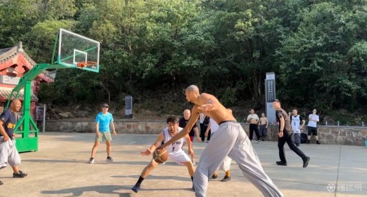 少林篮球好啊,文班亚马在少林寺和师兄打篮球,展现惊人臂展