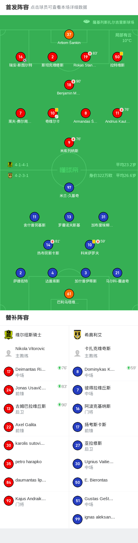 第48分钟,维尔纽斯骑士球员奇维尔卡助攻瑞安-斯图尔特打入一球。