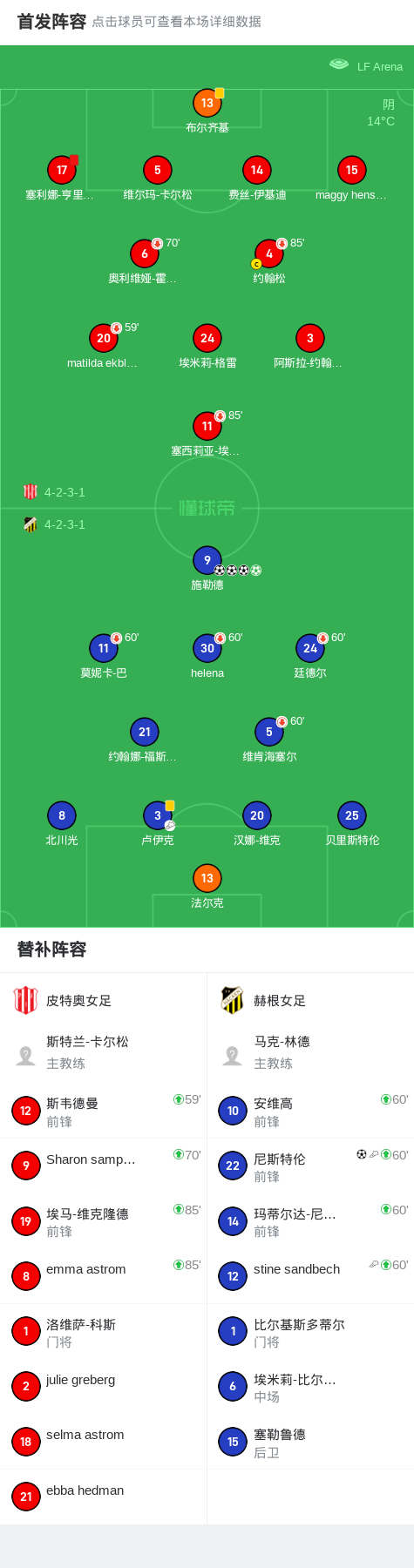 赫根女足5-0狂胜皮特奥女足,施勒德大四喜,尼斯特伦破门
