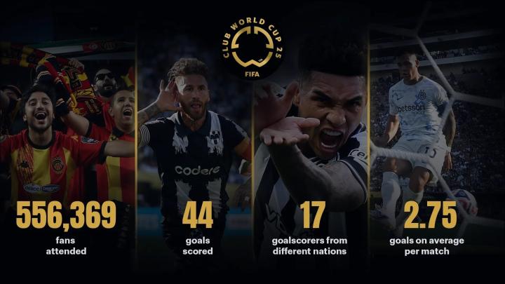 随着32支参赛俱乐部全部完成了小组赛首秀,2025年国际足联世俱杯首轮阶段已正式结束,累计现场观众人数已突破55.6万人次。