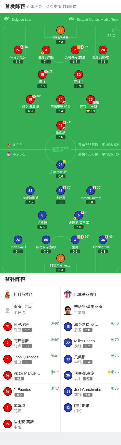 第16分钟,托利马体育球员阿莱士-卡斯特罗助攻阿德里安-帕拉打入一球。