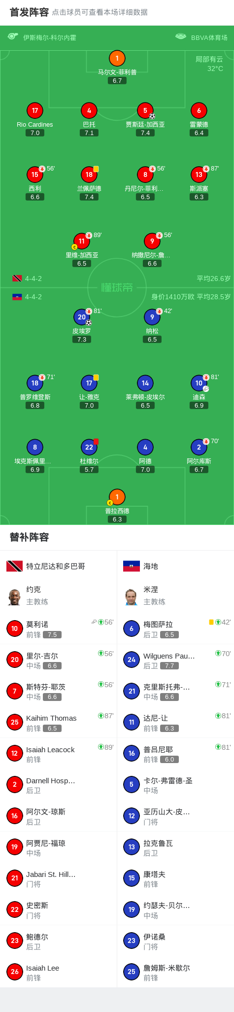 特立尼达和多巴哥1-1海地,皮埃罗首开记录,贾斯廷-加西亚扳平比分