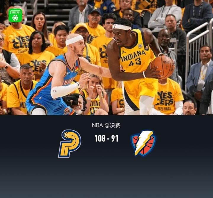北京时间6月20日,NBA季后赛总决赛G6步行者主场迎战雷霆。开场雷霆取得10-2开局,随后步行者一波三分雨轰出24-7反超领先9分,节末段雷霆亚历山大领衔缩小至3分分差,次节前半段双方保持拉锯,随后步行者又是一波三分雨将分差领先两位数,节末收尾哈利伯顿、西亚卡姆联手继续拉大分差至20分以上,半场步行者64-42雷霆,第三节开节段双方持续哑火,步行者顶住雷霆反扑以30分领先进入末节,末节雷霆直接缴械投降换下主力,步行者108-91雷霆,系列赛大比分3-3迎来总决赛抢七!