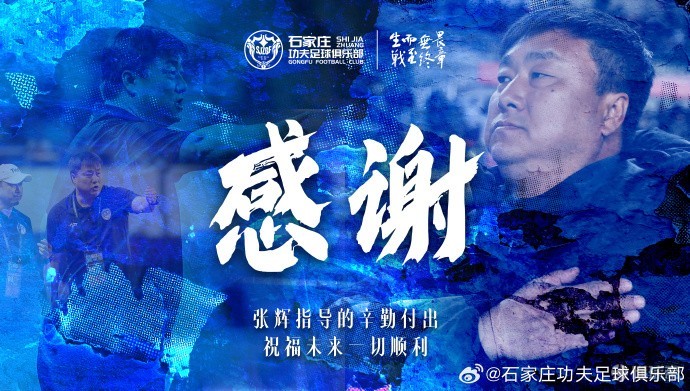 北京时间6月20日,石家庄功夫官方发布公告,张辉因家庭原因向俱乐部递交辞呈,即日起不再担任俱乐部一线队主教练职务。