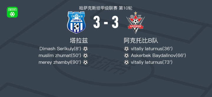 塔拉兹3-3阿克托比B队,Dimash Serikuly首开记录,merey zhambyl救主