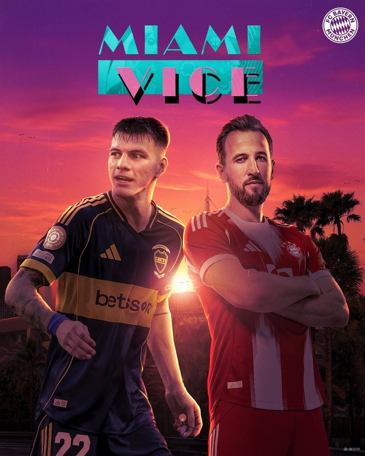 迈阿密风云,拜仁发布对阵博卡青年赛前海报:凯恩出镜