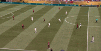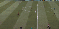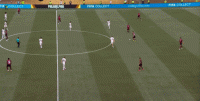 这个换位稀松平常,没什么可说的,但在对手接球前夕,其实你可以看到球的左右两侧,都有大片可利用的空当,只不过弗拉门戈球员能力有限,选择接球对抗,而没有直接打到而已: