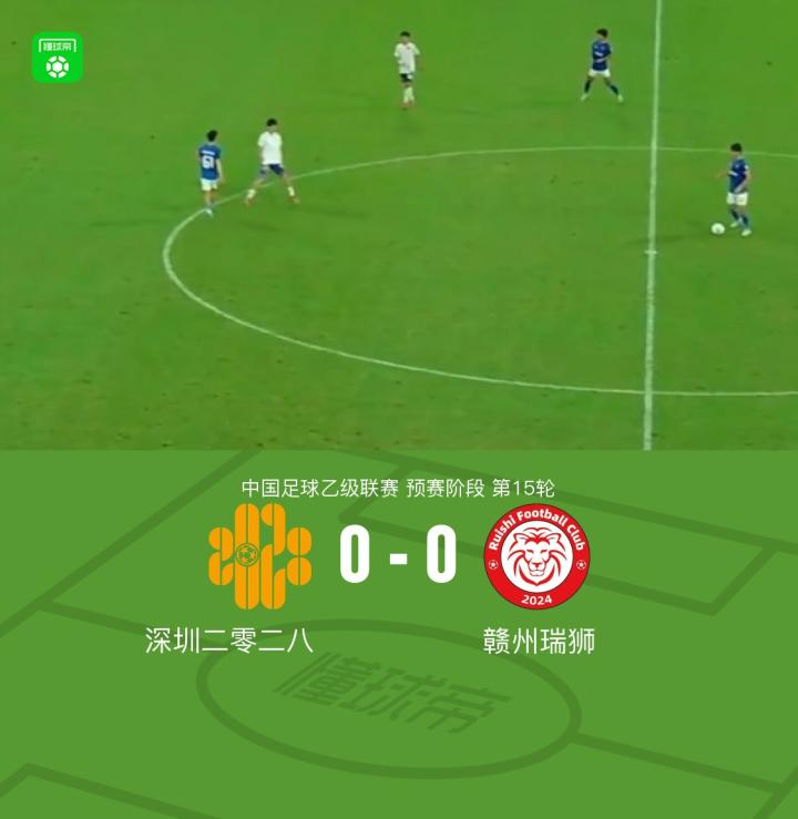 深圳二零二八0-0赣州瑞狮,双方均无建树战报bot @懂球帝2025-06-21 21:29北京时间6月21日,中国足球乙级联赛预赛阶段第15轮,深圳二零二八主场迎战赣州瑞狮。全场比赛双方均未能取得进球,最终以0-0的比分握手言和。点击查看本场比赛详细数据>>点击查看中乙完整积分榜>> 球队阵容 展开更多