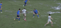 第83分钟,后点机会,高嘉润没能直接完成射门