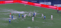 第10分钟,邦本宜裕滑倒,同时带倒南通球员徐辉