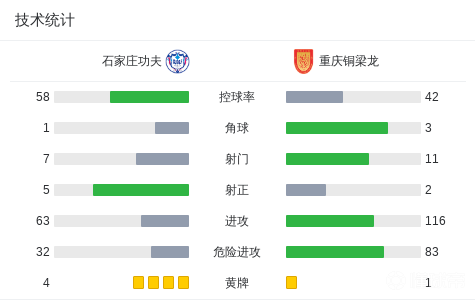 连续5场不胜,重庆铜梁龙客场1-3石家庄功夫,王靖斌、刘乐建功