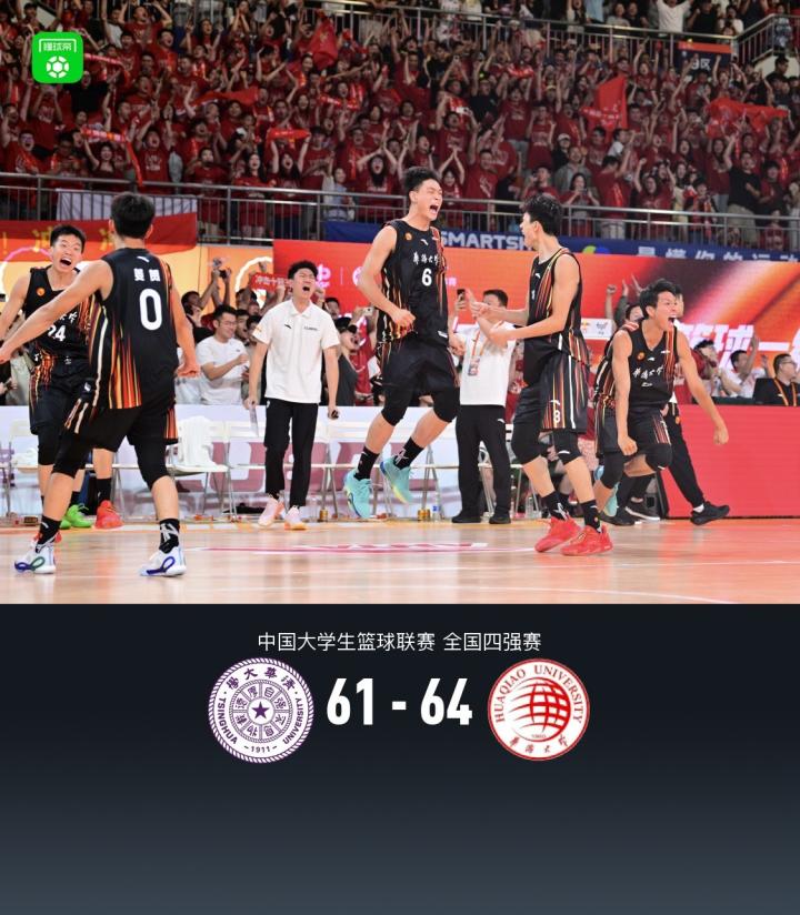 北京时间6月21日中国大学生篮球联赛全国四强赛,清华大学对阵华侨大学。半场清华大学23-18华侨大学,四节战罢双方战成50平。最终华侨大学经过双加时鏖战64-61战胜清华大学挺进决赛,将在北京时间6月22日19:30迎战北京大学。