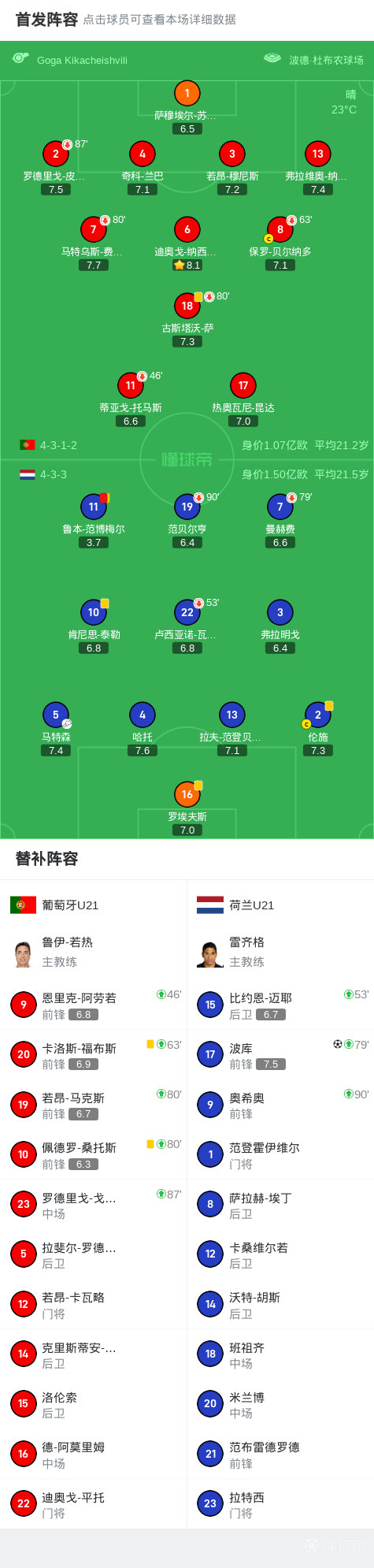 欧青U21十人荷兰1-0淘汰葡萄牙晋级四强,波库制胜,昆达丢点